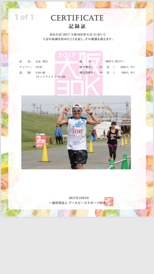 さて、10月1日(日)に『大阪30K』という淀川沿いを30km走る大会に参加してきました。